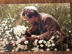 Op deze foto plukt mijn vader (1922-2005) bloemen voor zijn lief waarmee hij vaak in onenigheid leefde. Maar mooie dagen waren er dus ook, dan plukte hij bloemen voor haar. Zijn naam was Alexander, hij was vader van zeven kinderen die hij nooit helemaal kon bijhouden. Het meest had hij te stellen met zijn vierde kind. Moeilijk in toom te houden, leefde buiten de begaanbare paden. Mijn vader bezocht hem in de verschillende onderkomens in Amsterdam, bracht hem spullen die hij nodig kon hebben. Dit deed hij samen met zijn tweede vrouw, nadat zijn eerste liefde, moeder van zijn kinderen, in 1982 was overleden waarna zijn vierde kind op drift raakte.